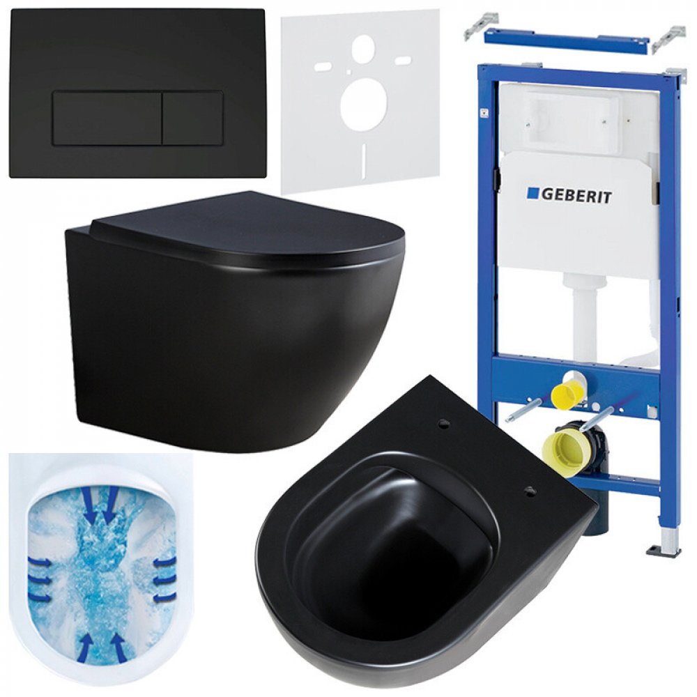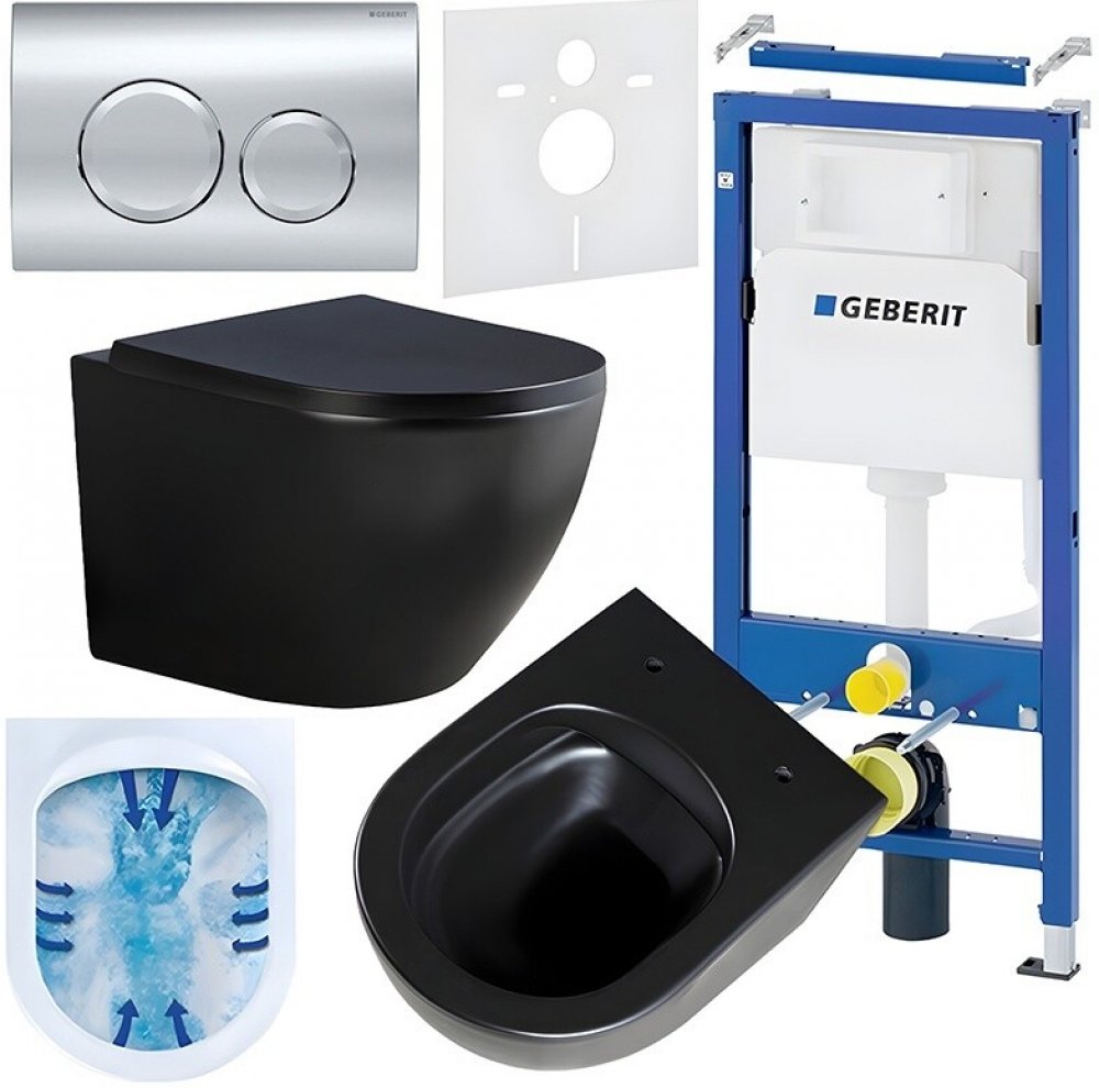 Podomítkový WC set Geberit DuoFix s WC mísou PK-MTB-RIM-02 je kompletní řešení pro moderní koupelny, které spojuje elegantní design, funkčnost a vysokou odolnost. Tento set zahrnuje podomítkový instalační rám, závěsnou bezokrajovou WC mísu, zvukoizolační vložku a dvoudílné ovládací tlačítko. Všechny komponenty jsou součástí balení, takže není třeba nic dokupovat zvlášť.