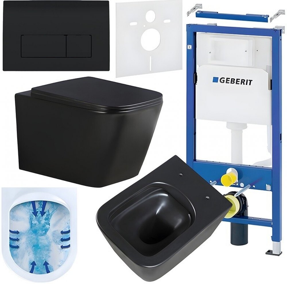 Podomítkový WC set Geberit DuoFix s WC mísou RN-MTB-RIM-03 je kompletní řešení pro moderní koupelny, které spojuje elegantní design, funkčnost a vysokou odolnost. Tento set zahrnuje podomítkový instalační rám, závěsnou bezokrajovou WC mísu, zvukoizolační vložku a dvoudílné ovládací tlačítko. Všechny komponenty jsou součástí balení, takže není třeba nic dokupovat zvlášť.