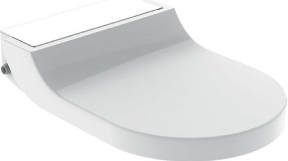 WC sedátko Geberit AquaClean Tuma Comfort ke komfortnímu používání WC bze zápachu, k ošetřujíací očistě anální a vaginální oblasti vodou, k dodatečné montáži na WC keramiku - výměna za WC sedátko, designový kryt bílé sklo.