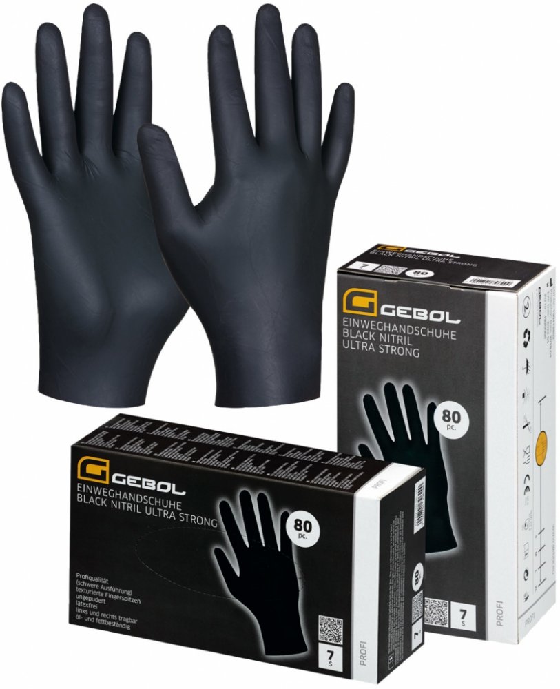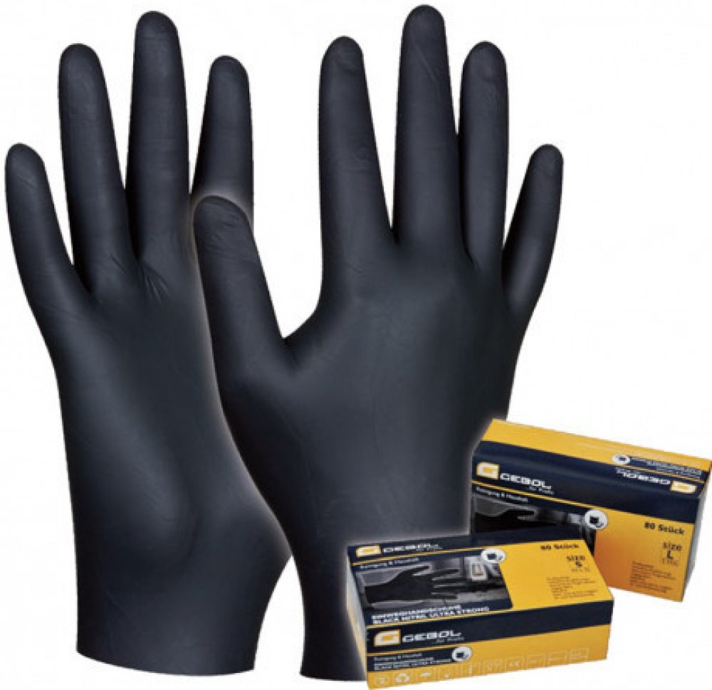 Ochranné jednorázové rukavice, vysoce odolné proti protržení, velikost M, balení 80 kusů – GEBOL Black Nitril 709630