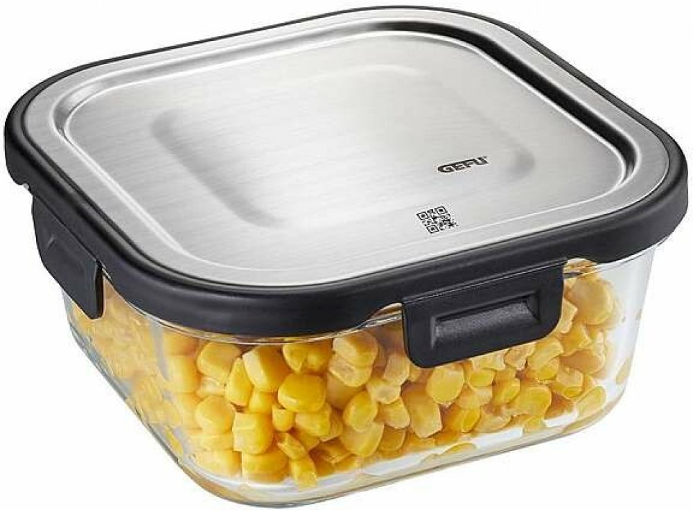 Víko z nerezové oceli je doplněno silikonovým těsněním a pevnými klipy pro hermetické uzavření, které zabrání úniku tekutin a pomůže uchovat čerstvost i aroma uložených jídel. Box lze bezpečně používat v troubě, mikrovlnce (bez víka) i mrazáku – díky odolnosti skla až do +300 °C a −20 °C. Vynikající volba do práce, školy nebo na cesty.