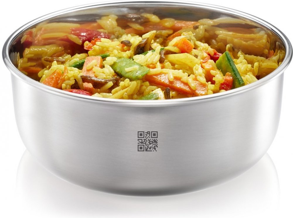 Laserem vyřezaný QR kód pro kontrolu zásob prostřednictvím aplikace (pouze pro Android) – Funguje to takto: Stáhněte si bezplatnou aplikaci „Správce zásob, úložiště a nákupních seznamů“ | Naskenujte QR kód a upravte plechovku (číslo záznamu, hmotnost, ml, trvanlivost atd.) | A tak můžete snadno spravovat celou zásobu všech skladovacích míst, jako je lednička, mrazák nebo sklad | Vytvářejte nákupní seznamy | Data lze ukládat lokálně v telefonu a také je upravovat offline.
