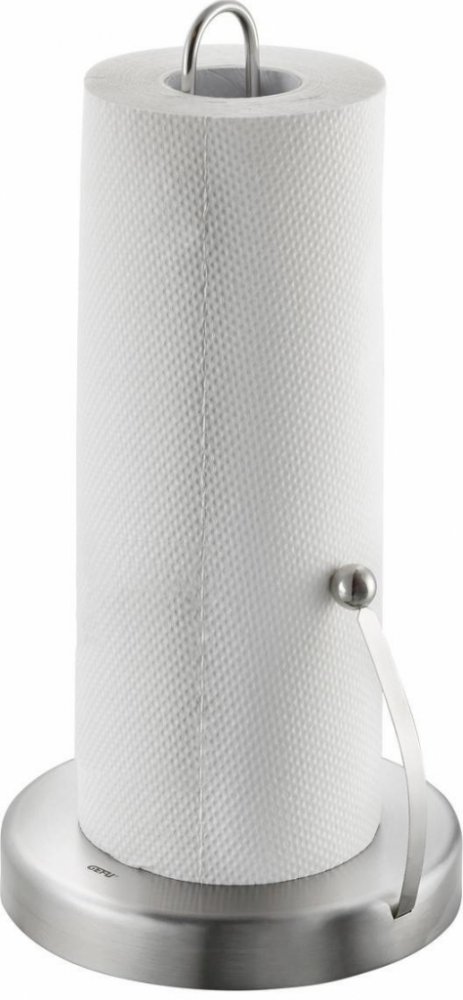 Praktický držák kuchyňského papíru pro čisté ruce při vaření. Díky jedno-ručnímu ovládání, těžké základně a flexibilní pružině, která přidržuje papír, nemusíte mít strach z nepříjemného ušpinění. Elegantní nerezový design a přiložená role papíru pro okamžité použití.