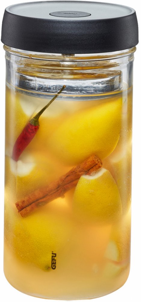 Fermentační sklenice Nativo s objemem 1,5 litru je ideální pomůcka pro přípravu domácích fermentovaných potravin. Je vyrobena z pevného a trvanlivého varného skla, které je certifikované pro styk s potravinami, takže můžete být jisti, že vaše jídlo bude bezpečné a zdravé.Součástí soupravy jsou masivní skleněné závaží a víčko s ventilem, který umožňuje uvolňování plynů vznikajících při fermentaci a zároveň zabraňuje přístupu vzduchu, což usnadňuje skladování zkvašené zeleniny v lednici.Díky svému ventilačnímu systému sklenice Nativo umožňuje přirozenou fermentaci, při které se zachovávají přirozené chutě a výživné látky potravin. Sklenice je navržena a vyrobena německou značkou Gefu, která je specializovaná na designové vychytávky do kuchyně, takže si můžete být jisti kvalitou a funkcionalitou produktu.Fermentační sklenice Nativo je také snadno udržovatelná, protože všechny její části jsou vhodné pro mytí v automatické myčce na nádobí. Sklenice je balena v barevné kartonové krabičce, takže je ideální i jako dárek pro vaše blízké, kteří mají rádi zdravé a chutné jídlo.