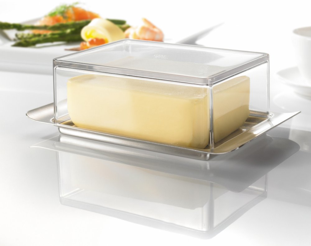 Perfektní pro máslo: tvarovaná mísa na máslo BRUNCH, která se díky svému optimalizovanému tvaru vejde téměř do každých dveří chladničky.