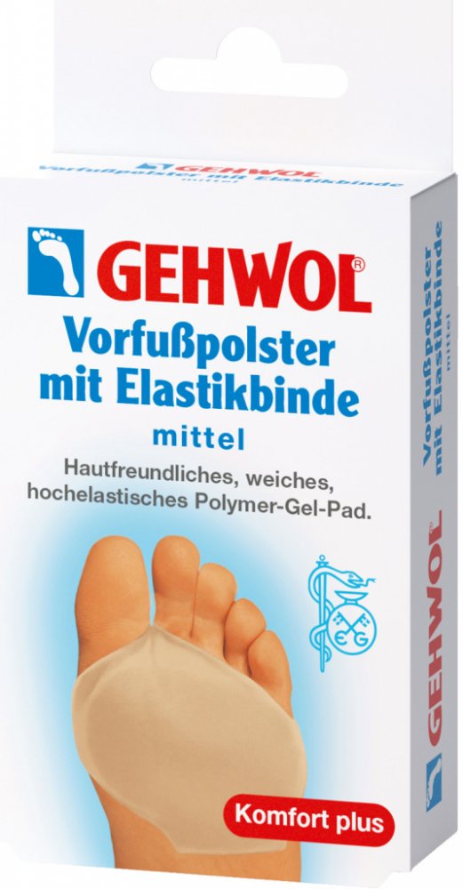 Vysoce pružný a poddajný polštářek z polymerového gelu s měkkým a obzvláště přizpůsobivým elastickým návlekem zajišťuje okamžitou úlevu od bolestivého tlaku v přední části chodidla a od pálení bříšek chodidla. Díky svému speciálnímu tvaru pasuje polštářek do každé obuvi a velmi pohodlně se nosí. Díky elastickému návleku zůstává gelový polštářek vždy na správném místě a okamžitě ulevuje chodidlu.