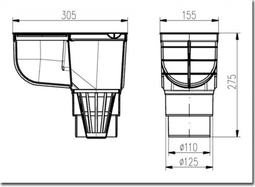Výrobek je určen pro odvod dešťových (povrchových) vod do kanalizačních systémů vně budov a umožňuje připojení okapových svodů. Obsahuje suchou protizápachovou klapku zabraňující zpětnému zápachu z kanalizačního potrubí. Plná verze vpusti obsahuje kroužky se jmenovitými rozměry průměrů 75, 80, 90, 100, 110, 125 mm.
