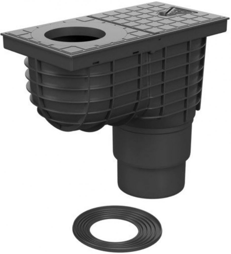 Geiger s dolní výpustí (lapač splavenin) pro odvod dešťové vody z okapového potrubí do kanalizačního systému. Výrobek je určen pro odvod dešťových (povrchových) vod do kanalizačních systémů vně budov a umožňuje připojení okapových svodů. Obsahuje suchou protizápachovou klapku zabraňující zpětnému zápachu z kanalizačního potrubí. Výr...