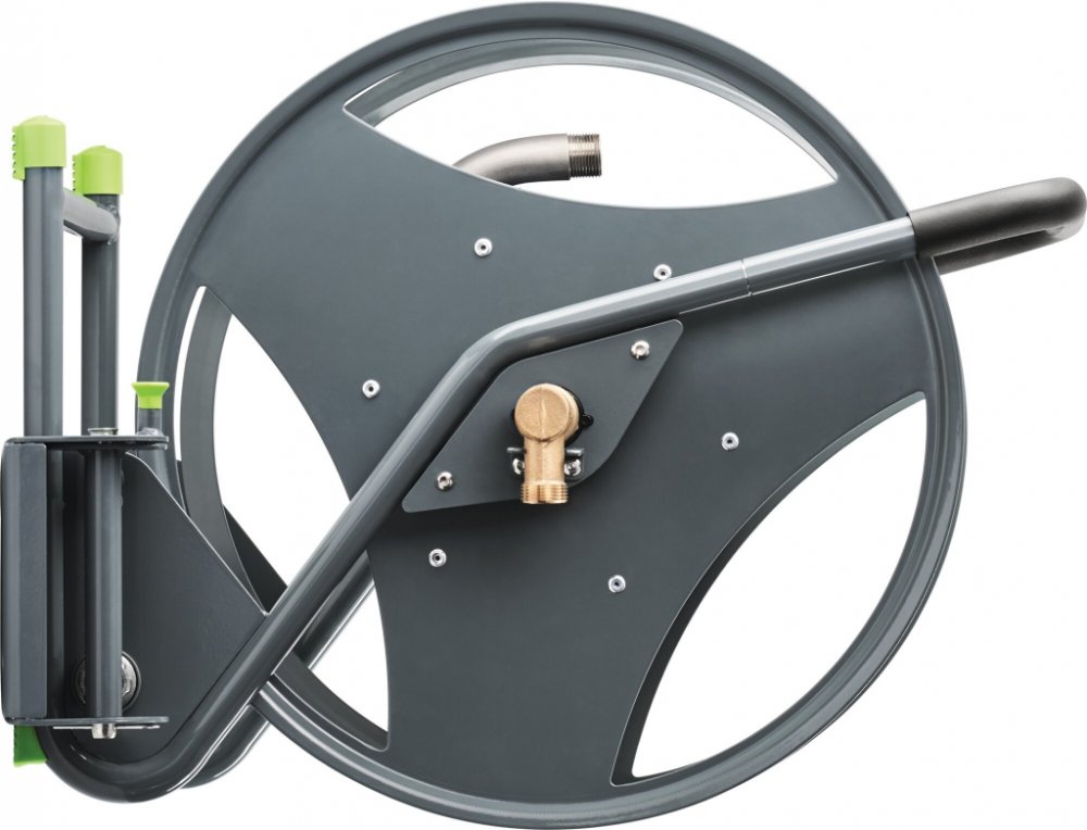 Profesionální velmi bytelný a kvalitní pojízdný naviják hadic, celokovový. Možno navinout: až 60 m 1/2" hadice, až 55 m 5/8" hadice, až 40m 3/4" hadice.