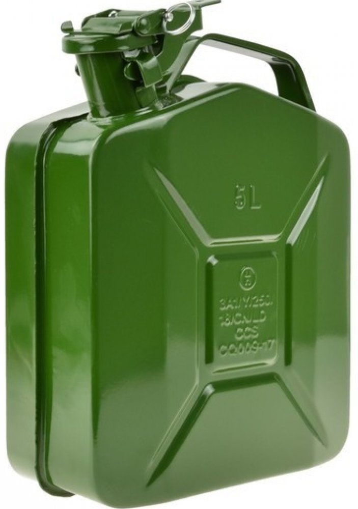 Plechový kanystr 5 LPlechový kanystr o objemu 5 litrů je určen k přenášení benzínu, nafty nebo oleje. Kanystr je vybaven rukojetí pro snadnější přenášení. Uzávěr má kovové těsnění, které zabraňuje vylití přenášené kapaliny, nechtěnému otevření dodatečně zabraňuje pojistka uzávěru.Technické údaje:Materiál: kovObjem: 5 lHmotnost: 1,381 kg