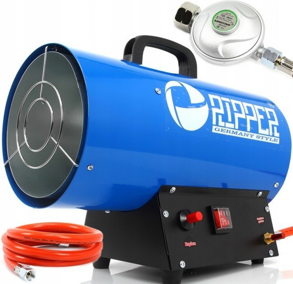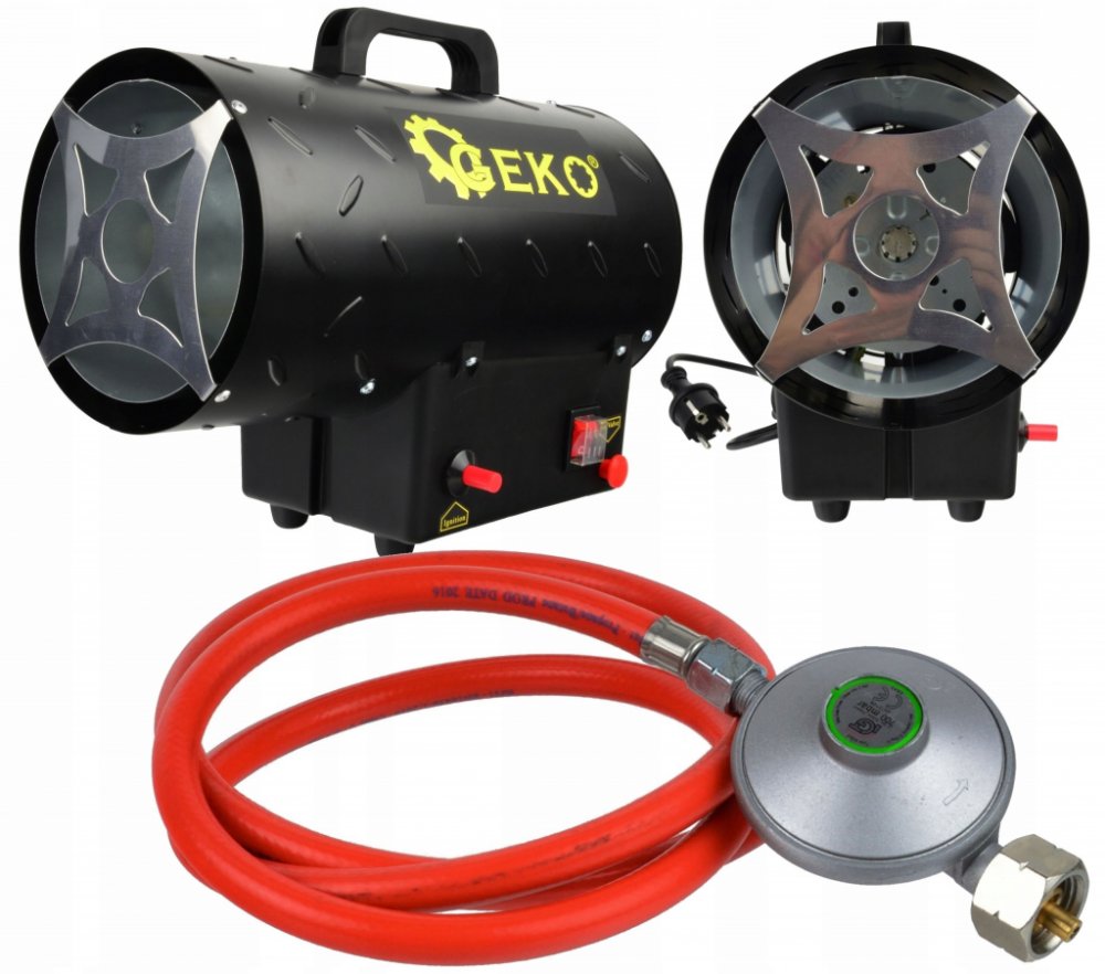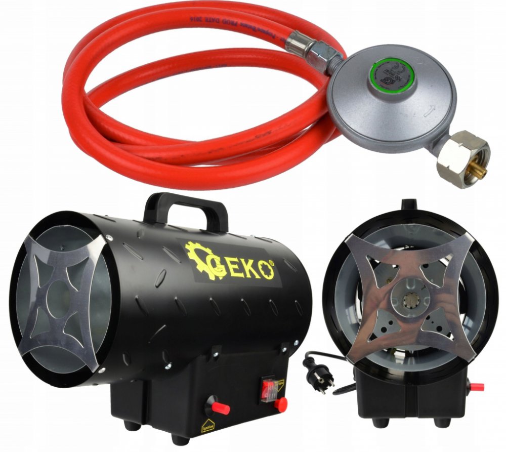 Plynový ohřívač 15kW + hadice a redukce je pečlivě zhotovené zařízení s jednoduchou konstrukcí, které se vyznačuje vysokou účinností. Disponuje vestavěným piezoelektrickým zapalováním a bezpečnostním zařízením proti přehřátí, které automaticky odřízne přívod plynu, čímž zajišťuje bezpečné používání.