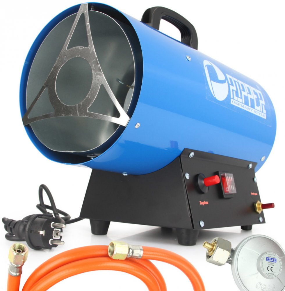 Ohřívač lze připojit k 5 nebo 11 kg plynové lahvi s propanem/butanem a výborně se hodí k vytápění dílen, hal, skladů apod. Součástí standardní výbavy je tlakový reduktor a gumová hadice o délce 1550 mm.
