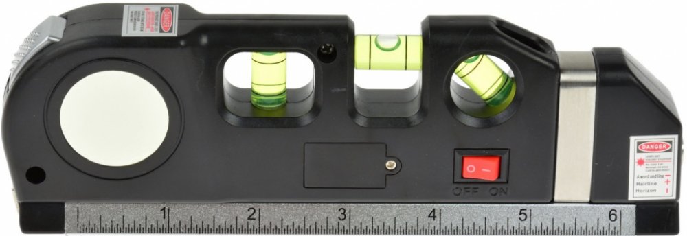 Laserová vodováha s metrem 2.5 mMultifunkční laserová vodováha se svinovacím metrem s délkou 2,5 metru je skvělým pomocníkem každého kutila. Laser dokáže promítnout tři zobrazení: vertikální, horizontální a křížové. Vodováha je vybavena třemi libelami: horizontální, vodorovná a úhlová 45°. Vodováha mě na těle pravítko s rozsahem 15 cm / 6", svinovací metr má délku 2,5 m měří v centimetrech nebo palcích.Technické údaje:Celková délka: 190 mmLaser: Class IIA (5 mW)Vlnová délka laseru: 630 - 650 nmNapájení laseru: 3 x LR44 AG13Meter: 250 cm / 8 stopMateriál: ABS plast, hliníkHmotnost: 250 g