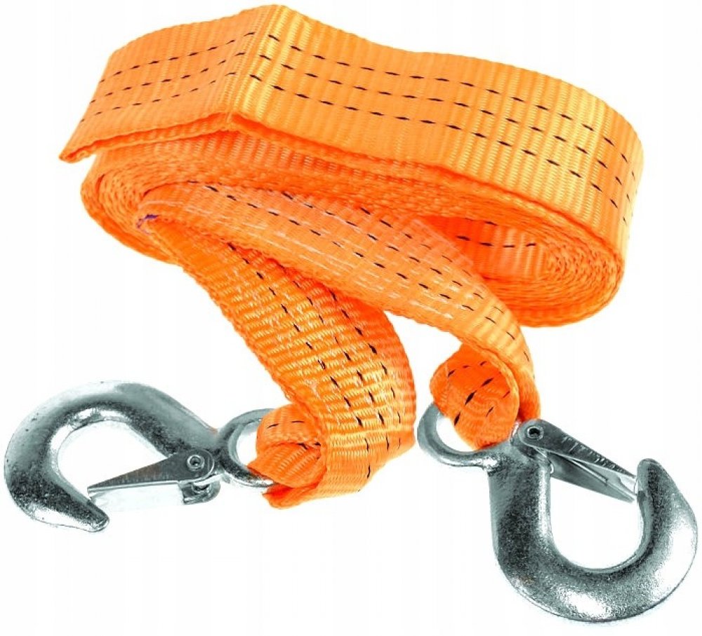 Autolano (pás) na vlečení nepojízdných vozidel, velká tažná síla 5000 kg, délka 750 cm, oranžová barva – GEKO G02392 Určeno pro vlečení nepojízdných a vyprošťování zapadlých aut až do 5tunové hmotnosti (osobní, dodávková, SUV, off-road, menší nákladní apod.). Na každém konci je hák vybavený bezpečnostní západkou – lano se snadno uchytí ke vlečnému bodu na autě a nehrozí, že se z něj vysmekne. Díky ostře oranžové barvě je lano mezi vozidly dobře vidět, čímž přispívá k bezpečnosti provozu. Vhodné jako součást povinné výbavy. Upozornění: smí se používat pouze k vlečení vozidel, která nemají poškozené brzdy! Technické parametry: - tažná síla: 5 tun - délka: 7,5 metru - zakončení: háky