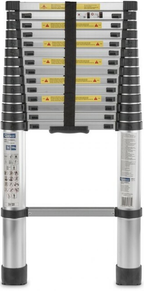 Teleskopický hliníkový žebřík 5m 150kgTento hliníkový teleskopický žebřík byl navržen tak, aby kombinoval skladnost s možností vysouvání. Jeho délku lze jednoduše přizpůsobit aktuálním potřebám, přičemž ve složeném stavu zabírá minimum místa – ideální pro skladování i přepravu. Hliníková konstrukce zajišťuje nízkou hmotnost a vysokou odolnost vůči korozi. Jednotlivé sekce lze prodlužovat nebo zkracovat podle konkrétní úlohy – ať už jde o práci ve výškách, v úzkých prostorech nebo na nerovném terénu. Uzamykací mechanismy zajišťují stabilitu a chrání před nechtěným pohybem sekcí. Žebřík je ideální pro domácí kutily, profesionály ve stavebnictví či zahradníky a hodí se pro použití v interiéru i exteriéru.Technické údaje:Výška po rozložení: 510 cmVýška po složení: 97 cmVzdálenost mezi stupni: 35 cmPočet stupňů: 15Maximální nosnost: 150 kg