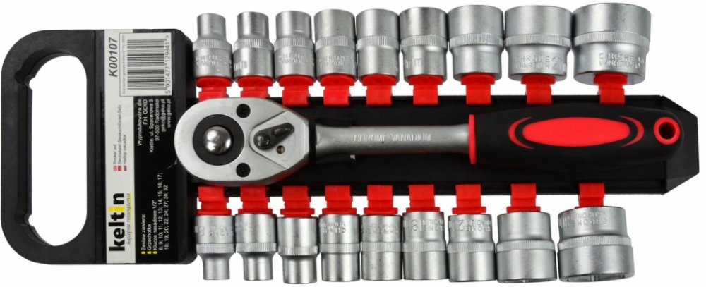 Sada nástrčných klíčů sestává z 18 nástrčných klíčů ve velikostech 8 - 32 mm a ráčny 1/2 "