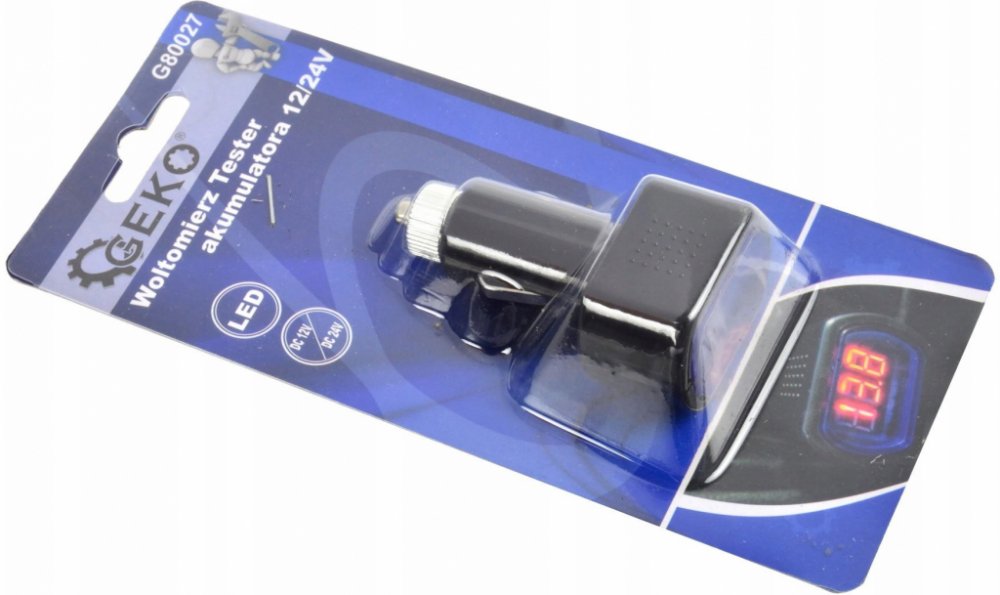Tester autobaterií (voltmetr) od renomované značky GEKO přizpůsoben na inštálciu 12/24 V Voltmetr umožňuje zkontrolovat stav nabití baterie a napětí alternátoru. Zařízení se spustí okamžitě po připojení do zásuvky zapalovače cigaret.