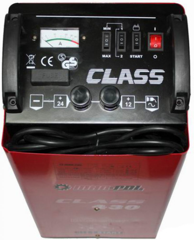 Nabíječka baterií CLASS 430 se startovacím zařízením je profesionální zařízení pro nabíjení akumulátorů nákladních automobilů, zemních strojů apod. s možností pomocného startování. Je určena pro olověné akumulátory s napětím 12 V, 24 V a kapacitě od 40 Ah.