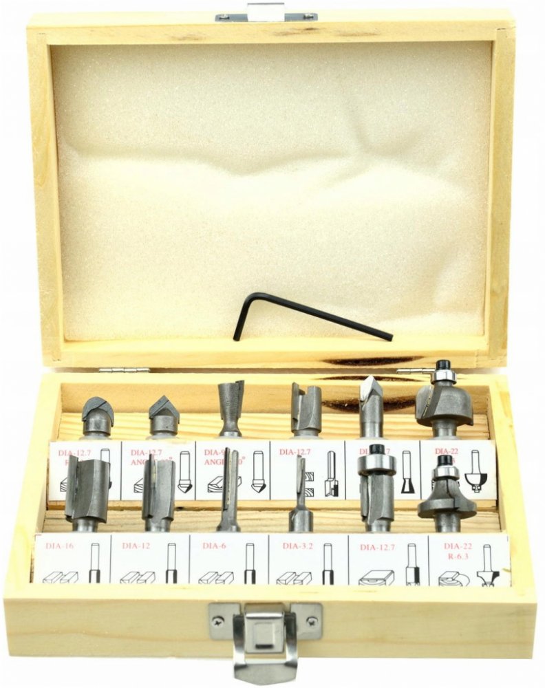 Sada 12 tvarových fréz na dřevo umožňující přesné zpracování materiálu. Čepele fréz jsou vyrobeny z rychlořezné oceli HSS, díky čemuž lze tyto nástroje použít pro zpracování masivního dřeva, dřevotřísky, MDF a dalších materiálů na bázi dřeva. Použitá ložiska, snižují valivý odpor, proto jsou frézy ideální pro tvarování oblých materiálů. Vše v praktickém dřevěném kufříku, kde má každá fréza své podepsané místo.