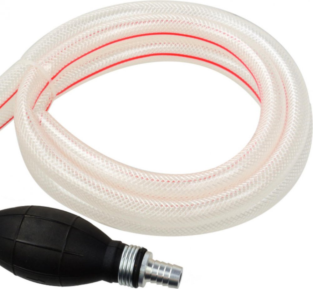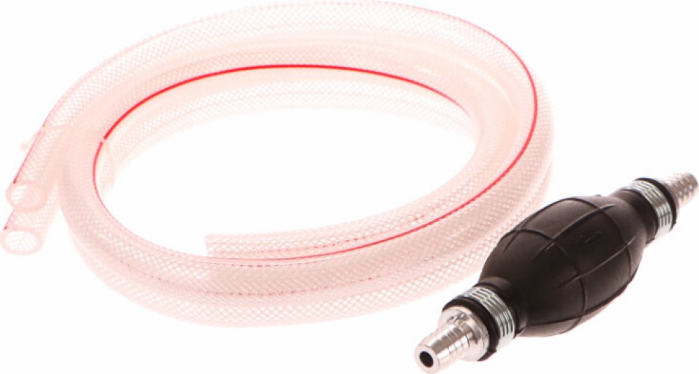 Univerzální ruční přečerpávač s propojovacími trubkami o průměru 8 mm nebo 12 mm a praktickými hadicemi o délce 1 m. Čerpadlo pro univerzální použití vyrobeno z vysoce kvalitní gumy a hliníku. Gumová pumpička má zpětný ventil, aby se zabránilo zpětnému toku paliva. Šipky ukazují směr, ve kterém teče palivo. Ideální pro zavedení paliva do palivového čerpadla po výměně palivového filtru. Ruční přeče...