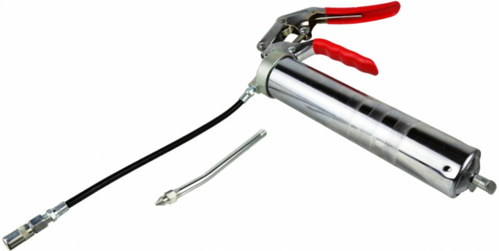 Ruční mazací pistole 400 mlPumpa na mazání 2v1 kombinuje pohodlí pistolového mazacího lisu s výkonem pákového mazacího lisu.Dlouhá ohebná hadice umožňuje mazání i na méně přístupných místech.