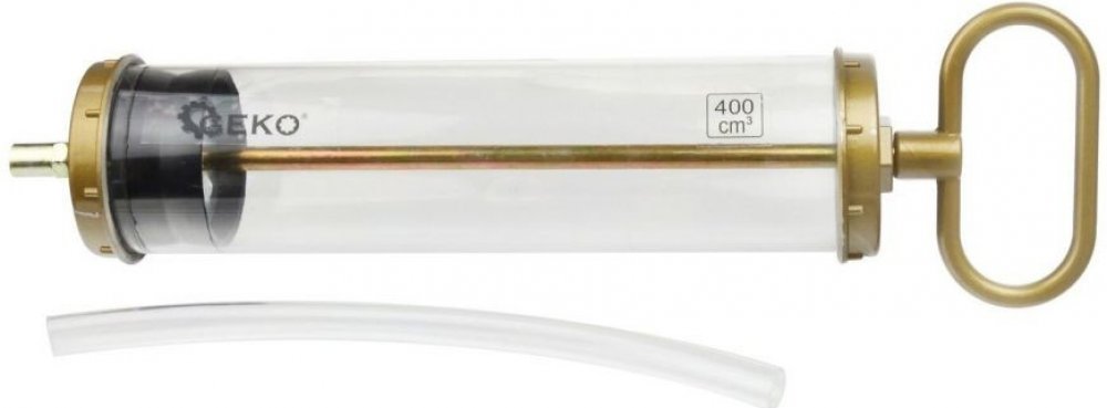 Manuální olejová stříkačka o objemu 400 ml. Používá se k vstřikování nebo sání oleje z obtížně přístupných míst, jako jsou převodovky, hnací nápravy atd.