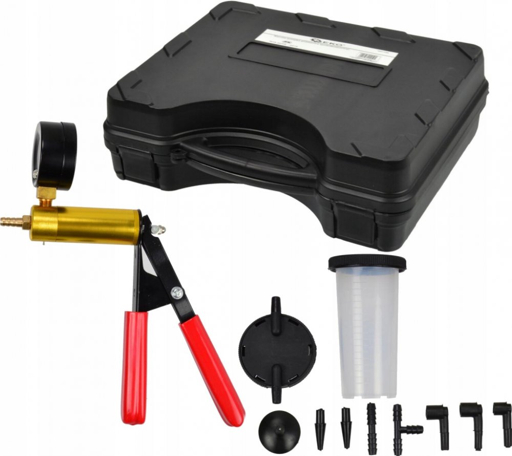 Sada umožňuje kontrolu hydraulických částí vozu. Může být použita k odvzdušnění hydraulických systémů nebo sifonových kapalin. Vybaveno integrovaným vakuometrem.