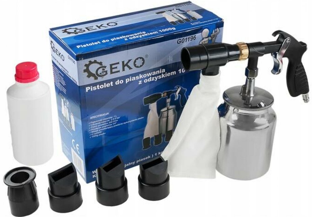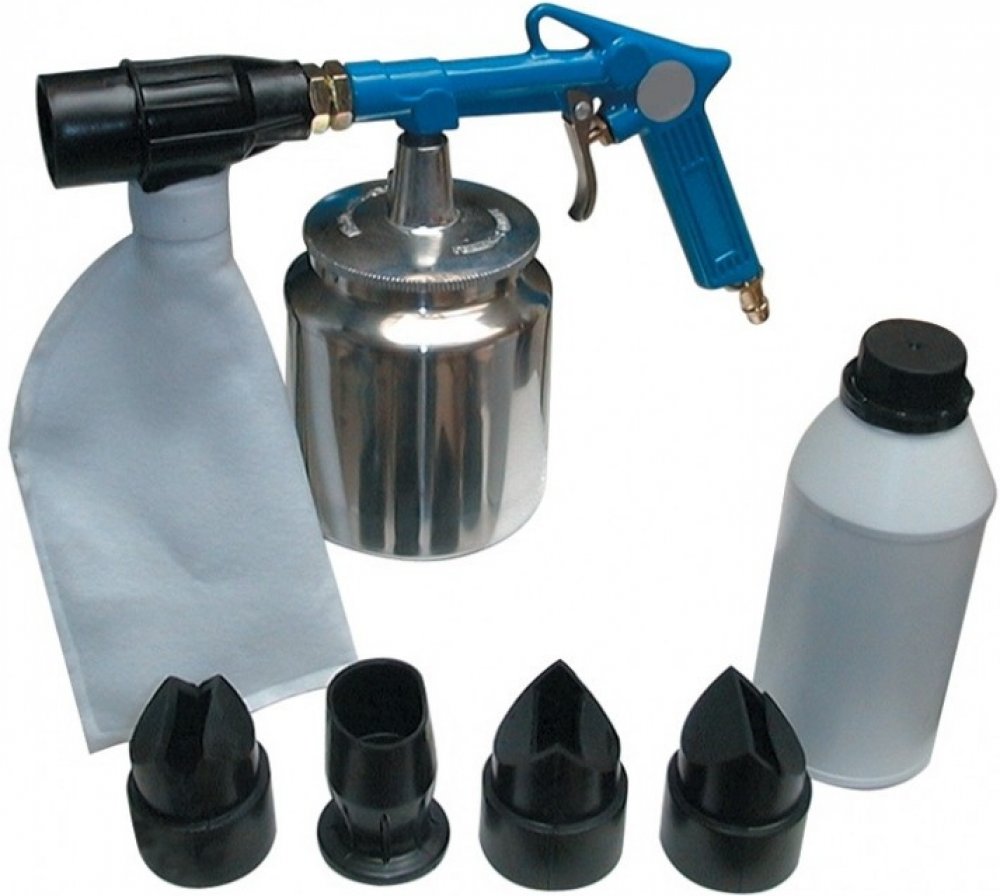 Pískovací pistole recirkulační 1l + trysky, abrazivní směs 1kg