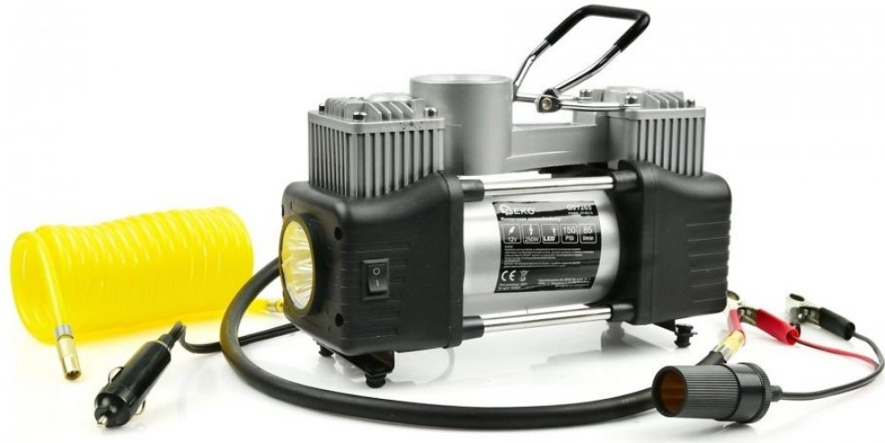 Kompresor do auta napájený napětím 12-13,5V ze zásuvky zapalovače nebo přímo z baterie.