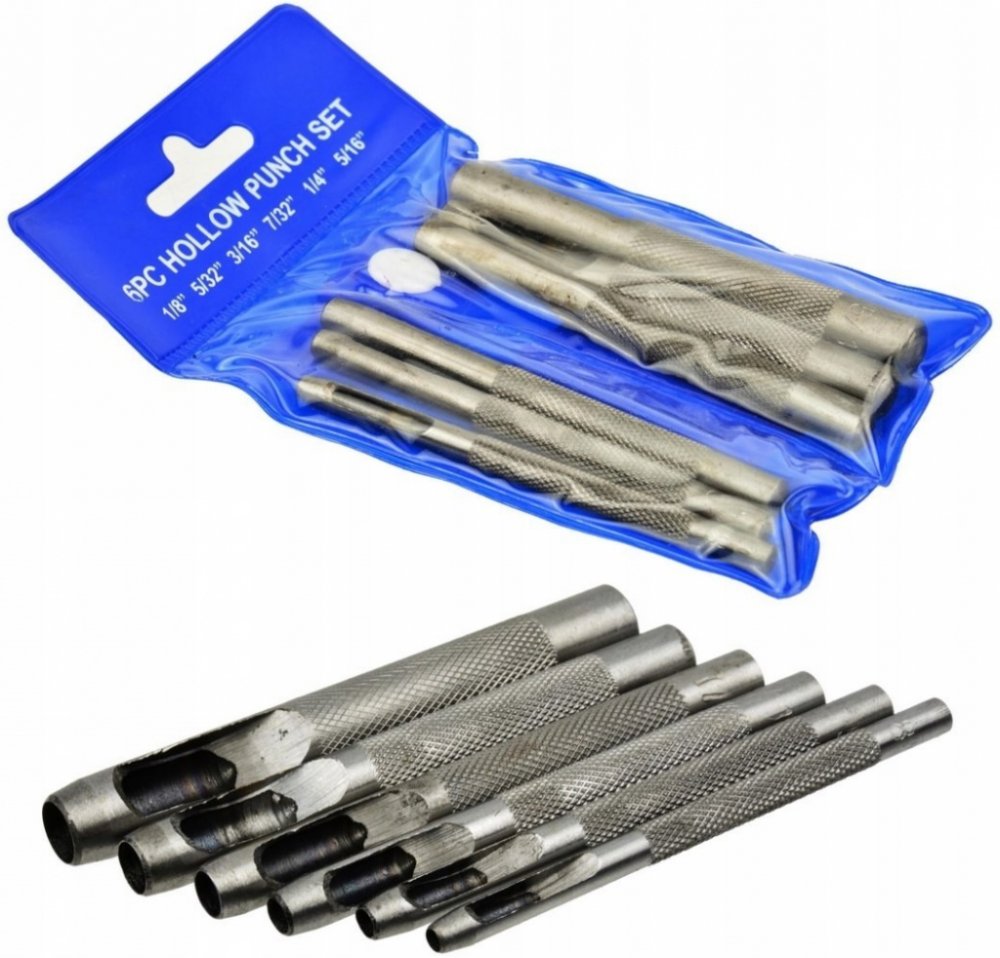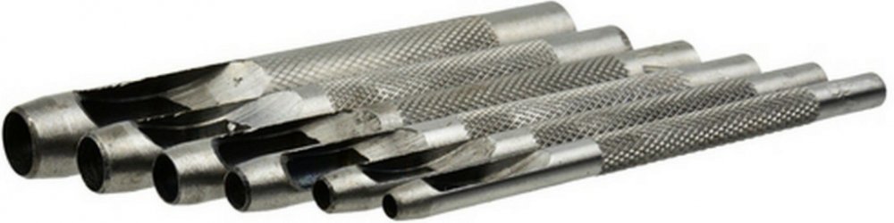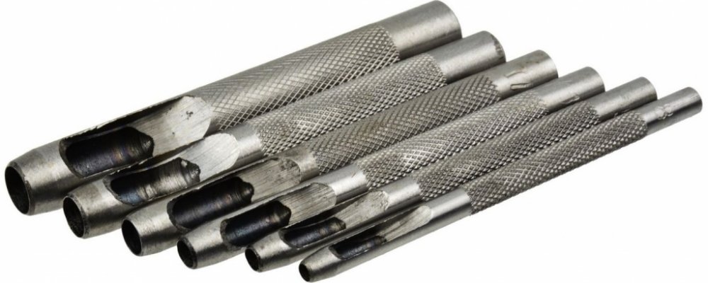 Sada kožených úderů. Děrovačky jsou vyrobeny z vysoce kvalitní nástrojové oceli.