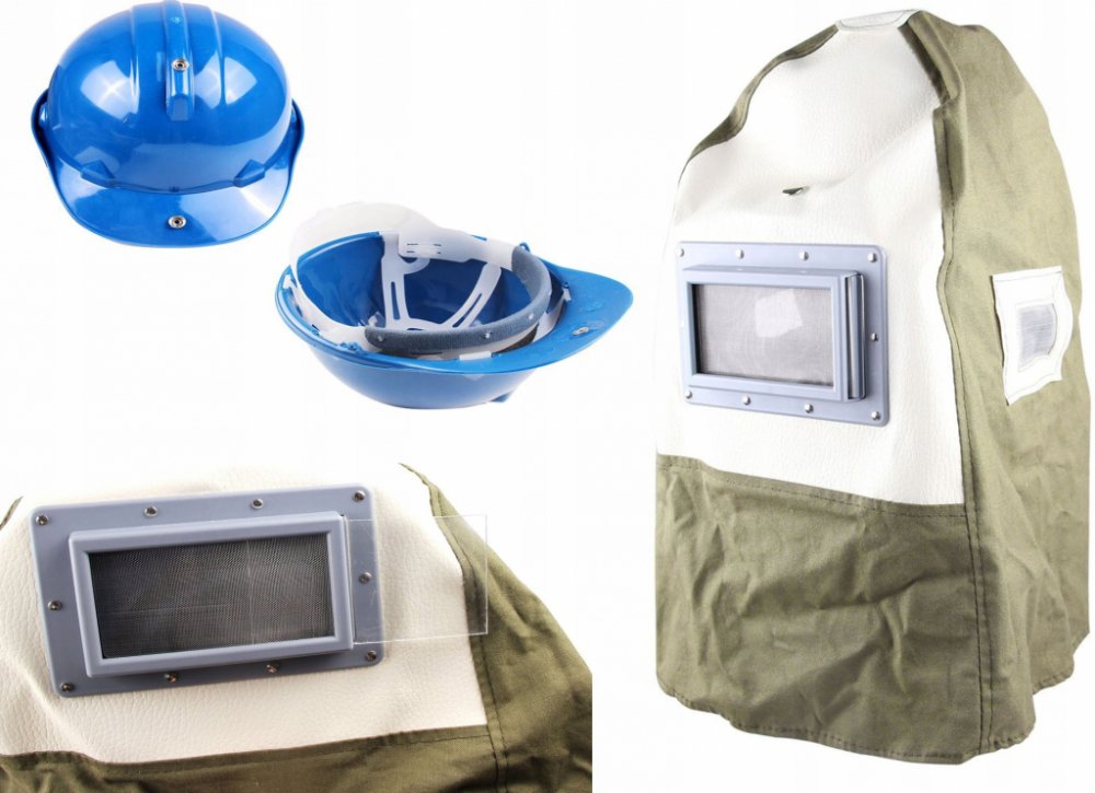 Maska na pískování, GEKOHledáček je vybaven plochým sklem a síťkouLehká a zároveň pevná konstrukceHelma je vybavena regulací (nastavení na hlavu)