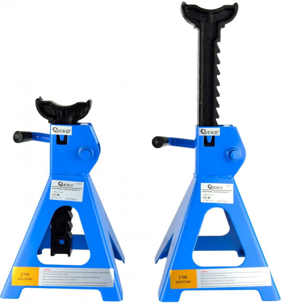 Tato sada automobilových stojanů je vyrobena z vysoce pevného ocelového plechu, což zajišťuje jejich dlouhou životnost a odolnost. Stojany využívají ráčnový mechanismus, který umožňuje přesné nastavení výšky na několika úrovních. Jsou ideální pro podpírání automobilů a jiných zařízení po jejich zvednutí pomocí zvedáku. Použitím stojanů lze snadno provádět různé údržbové a opravárenské práce v dílně nebo garáži, například výměnu kol.