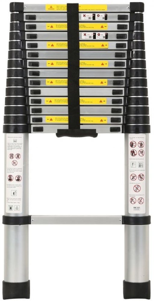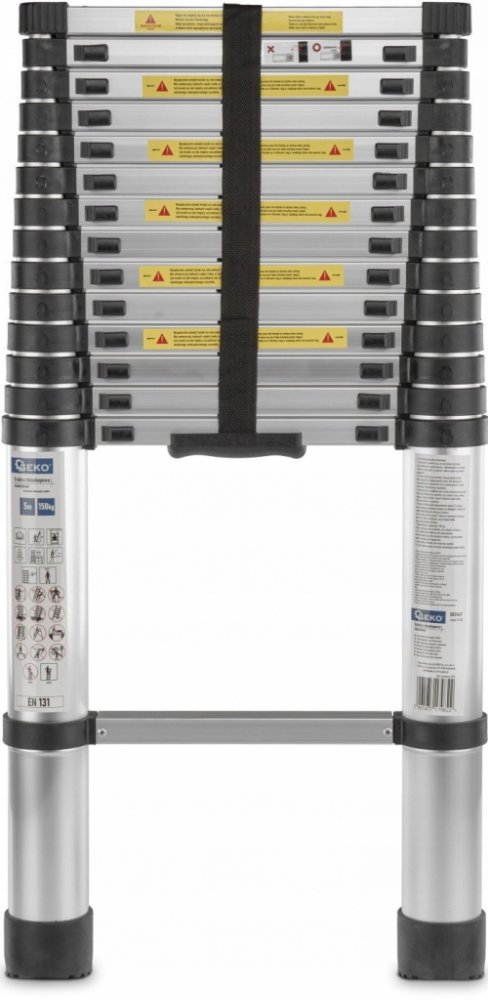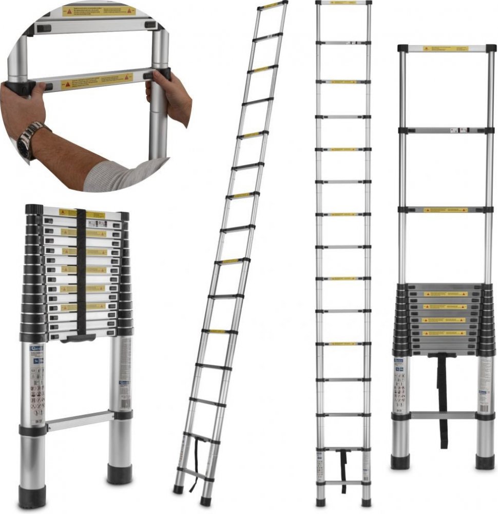 Teleskopický žebřík je tvořen sekcemi, které lze snadno vysouvat a zasouvat, což umožňuje přesné nastavení délky. Díky tomu je žebřík univerzální a přizpůsobitelný pro různé úkoly, jako jsou práce v různých výškách nebo na hůře přístupných místech. Každá sekce je zabezpečena blokovacími mechanismy, které udržují žebřík pevně na místě a zajišťují jeho stabilitu a bezpečnost při použití. Tyto mechanismy zabraňují náhodnému sklouznutí sekcí žebříku.