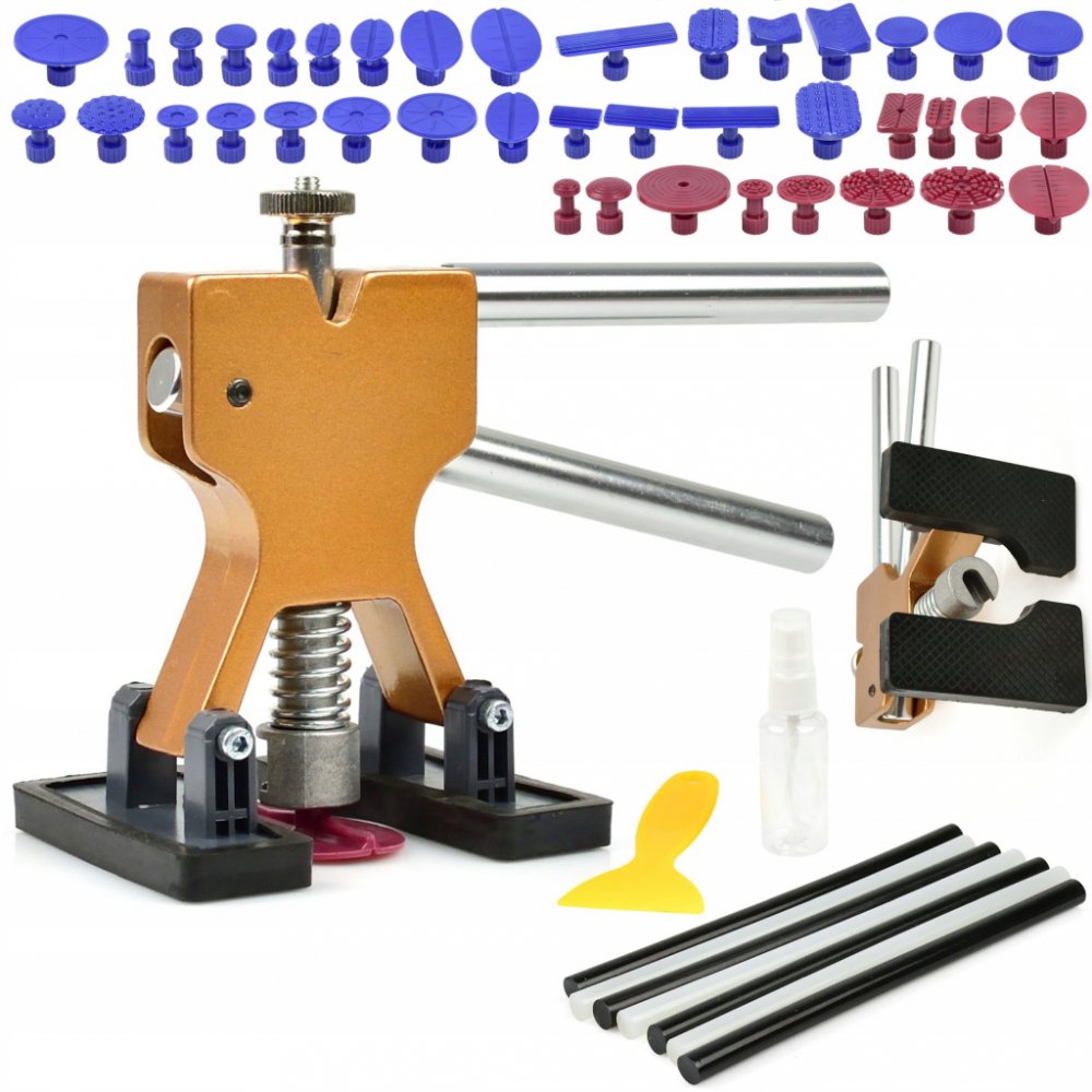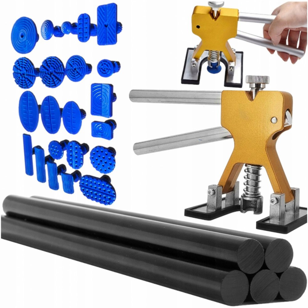 1 x vytahovák1 x mini zvedák na vytahování promáčknutí40 x nástavců (červená + modrá)7 x tyčinky lepidla1 x špachtle na odstranění lepidla1 x prázdná lahvička na rozpouštědlo 100 ml