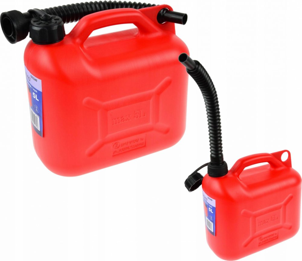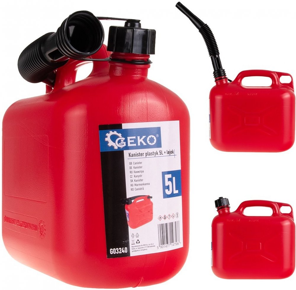 Plastový kanystr o objemu 5 litrů je opatřen rukojetí k uchopení a nálevkou. Určen pro palivo, oleje a vodu. Kanystr splňuje normu (atest) 3H1 / Y / 150/18 / PL COBRO 1649 / HGB.