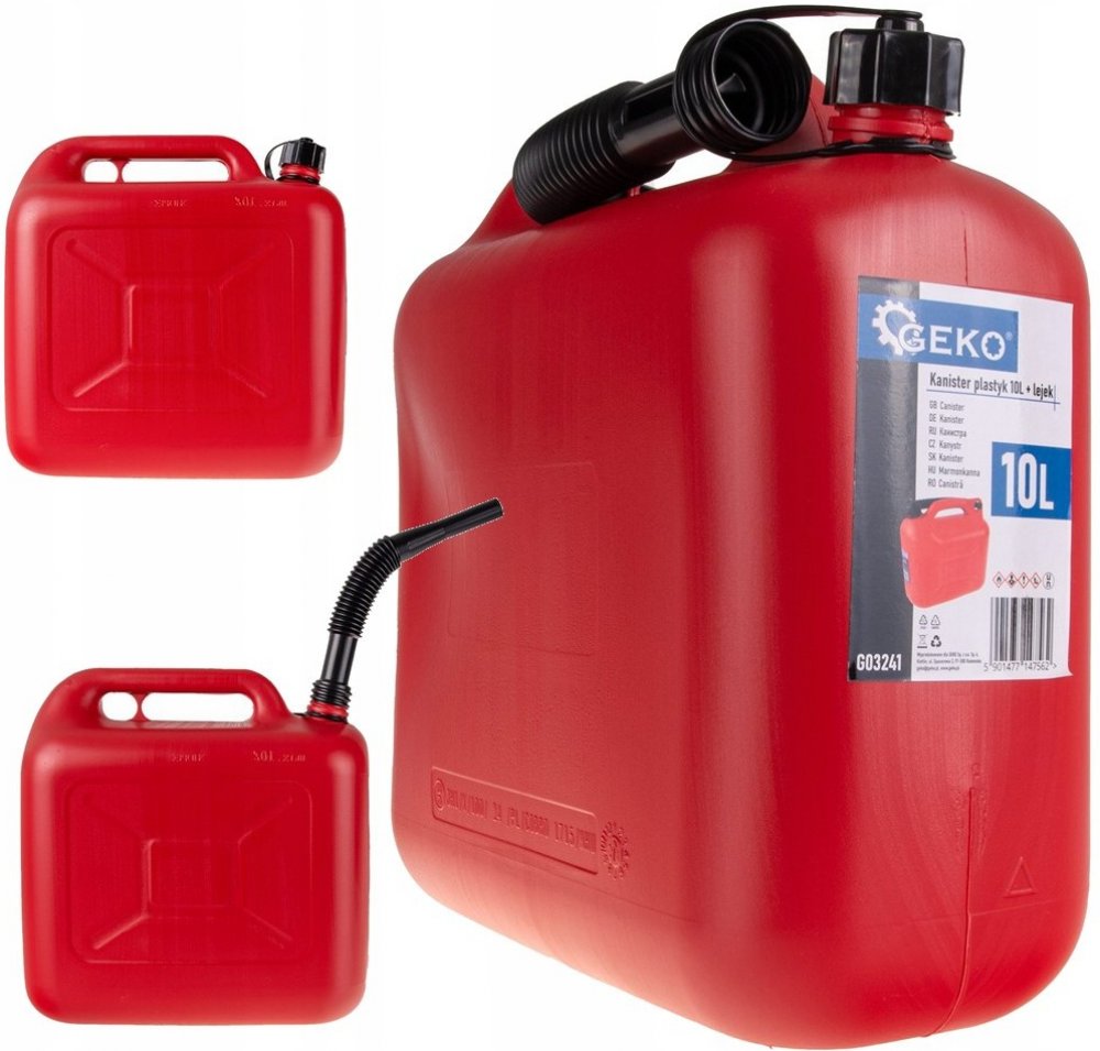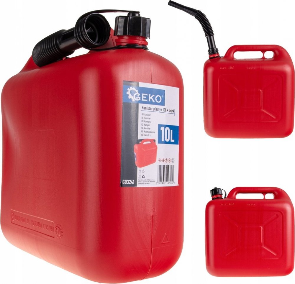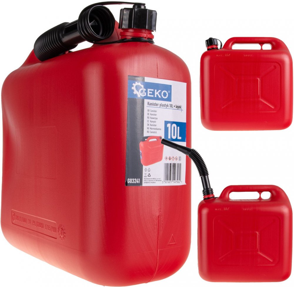 Plastová nádoba o objemu 10 litrů. Je opatřena rukojetí k uchopení a nálevkou. Určeno pro palivo, oleje a vodu. Kanistr splňuje normu (atest) 3H1 / Y / 150/18 / PL COBRO 1649 / HGB.