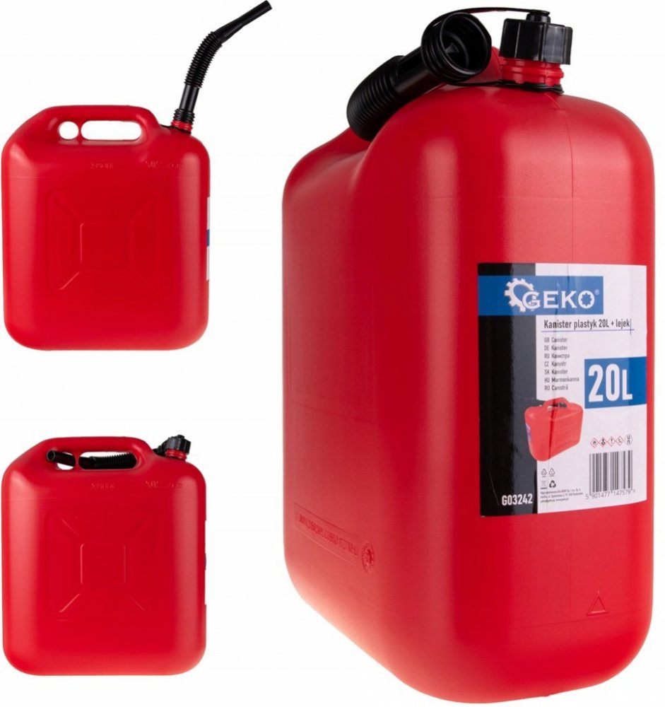 Plastová nádoba o objemu 20 litrů. Je opatřena rukojetí k uchopení a nálevkou. Určeno pro palivo, oleje a vodu. Kanistr splňuje normu (atest) 3H1 / Y / 150/18 / PL COBRO 1649 / HGB.
