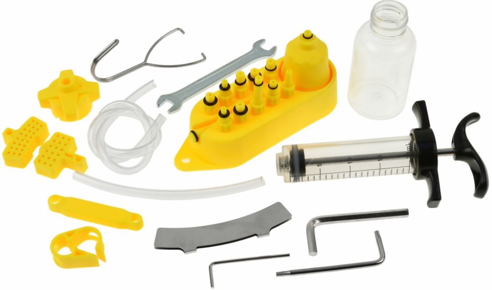 Sada na odvzdušnění brzdového systému jízdního kola GEKOSada pro odvzdušnění hydraulických brzdových systémů používaných u jízdních kol. Umožňuje odvzdušnit brzdové systémy značky: AVID, BENGAL, KLS, FORMULA, GIANT MPH, HOPE, HAYES, MAGURA, PROMAX, ROCKSHOX, SHIMANO, TEKTRO.Sada obsahujePlnící stříkačku11ks adaptérů pro plnění různých typů brzdNádobku na kapalinu2ks hadičekZaškrcovadloVymezovací vložky mezi pístky brzdiče3ks L klíč torx / imbusStranový klíč