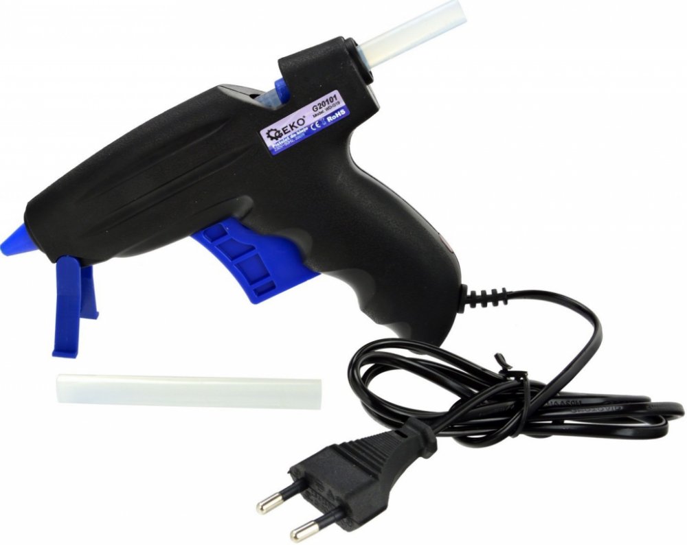 Lepící pistole je určena pro lepení plastů, skla, porcelánu, tkanin, dřeva atd. (Nepoužívejte pro materiály, které nejsou odolné vysokým teplotám).