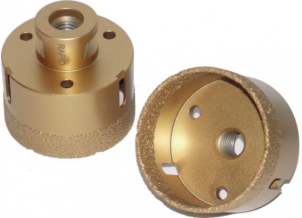Samochladící a výkonný diamantový vrták pro vrtačky (uchycení pomocí adaptéru, není součástí balení) a úhlové brusky umožňuje čisté vrtání do všech typů dlaždic bez vodního chlazení. Diamantová vrstva je na vrták nanesena pomocí technologie vakuového pájení. Vrták je ceněný pro svou rychlost vrtání i do velmi tvrdých materiálů.