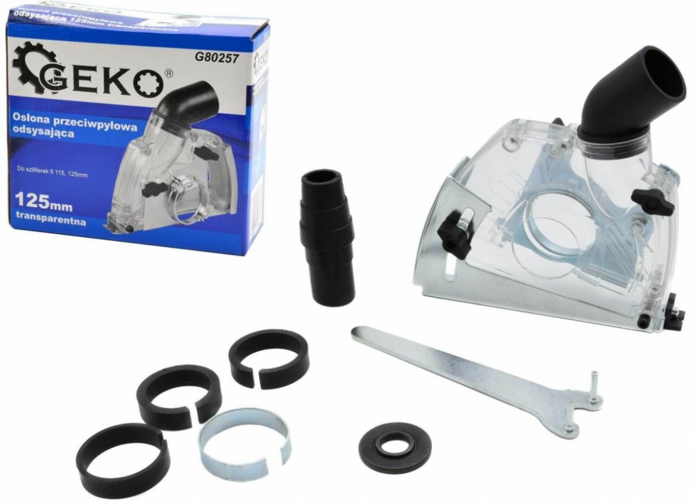 G80257 Dostupné: 10Ks Značka: GEKO Váha: 1.064Kg Popis: Odsávací kryt transparentní 125mm pro úhlové brusky 115-125mm GEKO