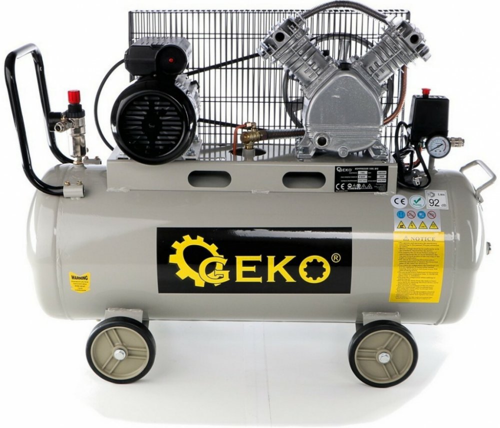 Dvouválcový, řemenový, olejový vzduchový tzv. „V“ kompresor GEKO G80309 Moderní vzduchový „V“ kompresor klasické konstrukce pro autoservis, pneuservis, dílnu i domácí použití. Výkonný motor, vzdušník objemu 100 litrů a sací výkon 390 litrů ...