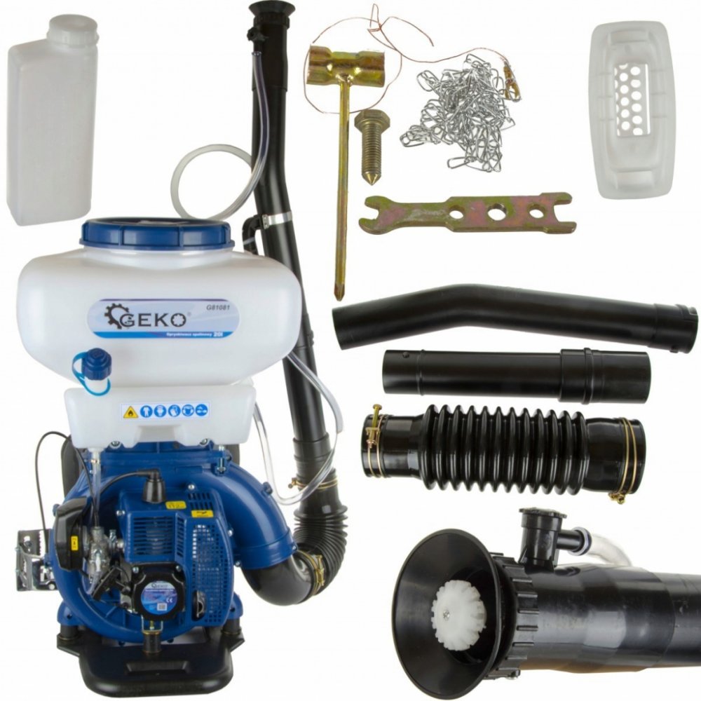 Praktický motorový zádový zahradní postřikovač GEKO je přenosný, flexibilní a vysoce účinný pracovní nástroj pro preventivní ochranu rostlin před chorobami a škůdci. Tento 20litrový zádový postřikovač lze použít při prevenci chorob rostlin a hubení škůdců na velkých plantážích a obdělávaných polích s obilovinami, v zahradách s květinami, ovocnými stromy, stromy čajovníků apod. Zařízení je vhodné pro práci v horských, kopcovitých a jiných typech terénu.