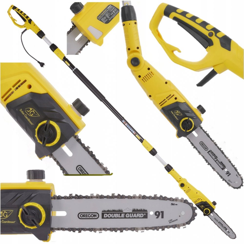Elektrická vyvětvovací pila 710 WElektrická vyvětvovací pila s výkonem 710 W je určena na odřezávání větví vysoko nad zemí. Má nastavitelnou délku od 229 do 289 centimetrů a variabilní úhel řezu od 0° do 30°. Pila má rukojeť ve tvaru písmene D, potaženou gumou pro jistější úchop při práci.Technické údaje:Napájení: 230 VVýkon: 710 WŘezná délka: 180 mmMazání řetězu: automatickéNastavitelná délka: 22...