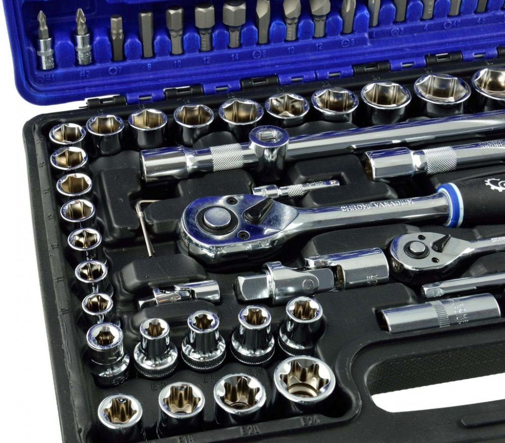 Sada gola klíčů 1/2" a 1/4" 108 kusů. Univerzální sada určená do dílen, servisů, ale také pro domácí použití. Klíče jsou vyrobeny z vysoce kvalitní chrom-vanadiové legované oceli.