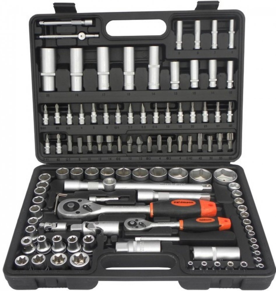 Gola sada 108 ksPraktická velká kvalitní gola sada vyrobená z oceli chrom vanadum obsahuje 108 ks nářadí. Všechny prvky a nástavce jsou uložené v plastovém kufříku. Sada obsahuje: * Nástrčné klíče 1/2": 10,11,12,13,14,15,16, 17,18,19,20,21,22,24,27,30,32 mm.* Nástrčné klíče prodĺoužené 1/2": 14,15,17,19,22 mm* Nástrčné klíče na zapalovací svíčky 1/2": 16,21 mm* Nástrčné klíče 1/4": 4,4.5,5,5.5,6,7,8,9,10,11,12,13,14 mm* Nástrčné klíče prodĺoužené 1/4": 6,7,8,9,10,11, 12,13 mm* Bity 1/4": Torx (T8, 10,15,20,25,27,30), imbus (3,4,5,6 mm), PZ (1.2), PH (1.2), Flat (4 , 5.5,6.5 mm).* Bity: imbus (7,8,10,12,14 mm), pH (3,4), Flat (8,10,12 mm), PZ (3, 4), Torx (T40, 45,50,55 , 60)* šroubovák 1/2" na nástrčné klíče* Adaptér 1/2"* Ráčna 1/2" a 1/4"* Prodlužovací tyčka 1/2" (125,250 mm) a 1/4" (50,100 mm)* Adaptér na klíč typ T 1/2"* Klíč typ T 1/4"* Kloubový adaptér 1/2" a 1/4"* Imbusy typ L (1.5,2, 3 mm)* Torx zásuvky na 1/4" (4,5,6,7,8) a 1/2" (10,11,12,14,16,18,20,24)