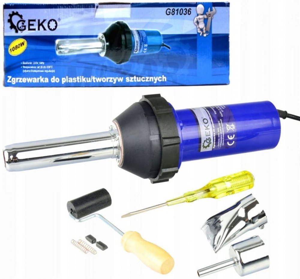 Přístroj bude ideální pro práce vyžadující použití proudu horkého vzduchu. Svářečka značky GEKO umožňuje svařování všech druhů plastů a plastických hmot. Bude ideální pro svařování plastových prvků karoserií automobilů, prasklých prvků kapotáží motocyklů i různých typů domácích spotřebičů. Přístroj se používá také k deformování, odbedňování, sušení, odstraňování fólií, laků a barev, spojování trubek a dalších profilů z plastů.