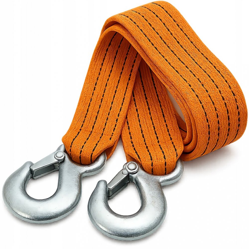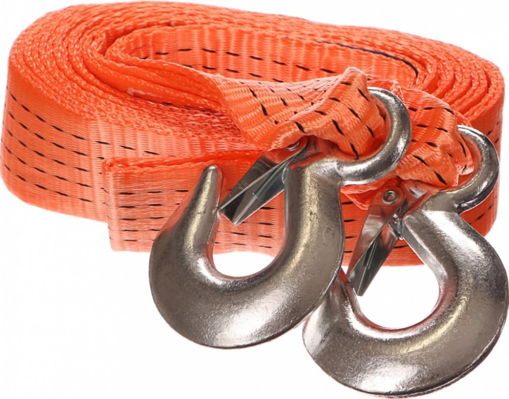 Robustní tažné lano z odolného polyesteru s šířkou 50 mm a délkou 5 metrů je navrženo pro bezpečné vlečení vozidel až do hmotnosti 5 tun. Díky výrazné oranžové barvě zajišťuje dobrou viditelnost i za zhoršených podmínek. Ocelové háky na obou koncích umožňují rychlé a pevné uchycení bez složité manipulace.