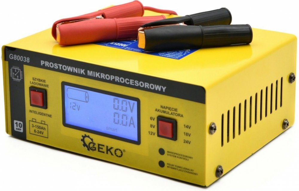 Mikroprocesorová autonabíječka na nabíjení 6V, 12V a 24V baterií. Umožňuje nabíjení baterií v rozmezí 0-10 A. Efektivní nabíjení zajišťuje 4-stupňová funkce automatického nabíjení a možnost zvolit si typ nabíjení: inteligentní nabíjení / rychlé nabíjení.