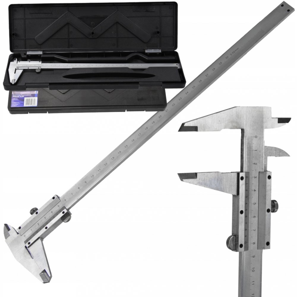 Posuvné měřítko s měřící délkou 300 mm. Dokonale funguje v průmyslu, při obrábění kovů, dřeva atd.